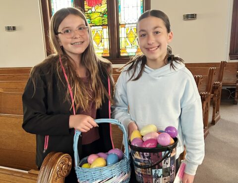 Our Sunday School children had a blast on Palm Sunday after church. We began with a pancake breakfast and the Sunday School paid for all SS kids. After breakfast the kids raced around the Sanctuary and picked up eggs filled with Easter treats. What a fun time for both kids and parents!
